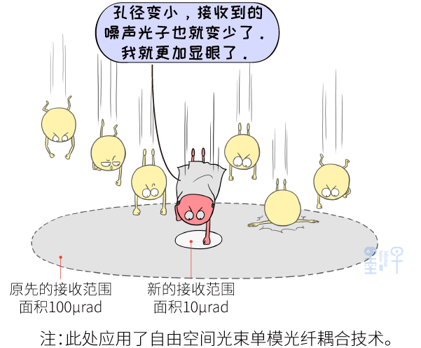 为了减小光子的接收范围,同时又不至于将真正的信号挡在接收范围之外,科研团队还发展了自由空间光束单模光纤耦合技术。