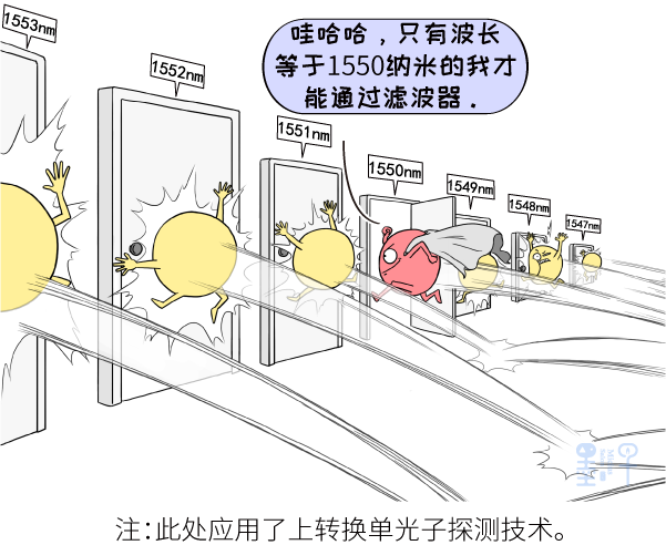 这种探测器并不是单纯地探测1550nm的光子,而是将它的信号转换成波长更短、能量更高的可见光。