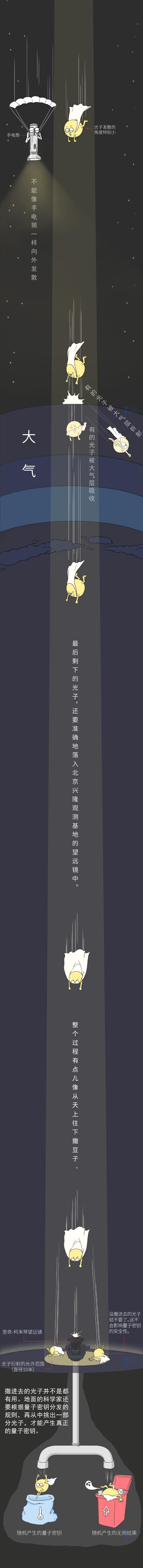 注:如果在卫星和地面站之间的不是太空和大气层,而是一根1200公里长的光纤,量子通信恐怕就搞不成了。