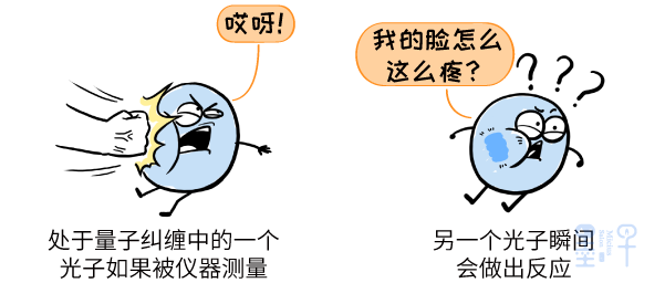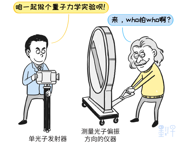 不论两个测量地点相距多远,只要其中一台仪器测量了一个光子,另一个光子也会瞬间做出反应,这就是爱因斯坦说过的,量子力学中含有的“鬼魅般的超距作用”。