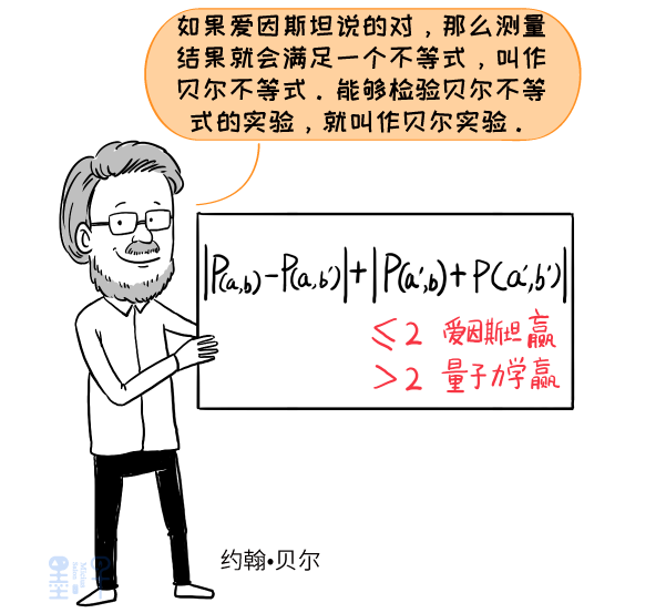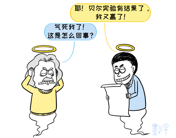这两个人吵了很久,谁也说不服不了谁。直到1955年爱因斯坦去世前,他们都没吵出结果。为了搞清楚爱因斯坦说的对,还是玻尔说的对,在1964年,物理学家约翰·贝尔提出了一种用实验检查量子随机性的方法。