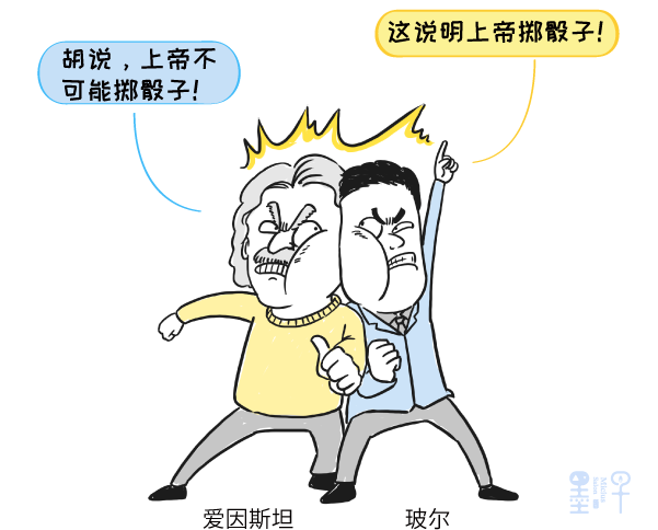 玻尔的看法刚好相反。他认为,世界上不存在“局域隐藏变量”。量子力学的随机不是伪装的随机,而是任何手段都无法操纵的真随机。换句话说,“上帝”肯定会掷骰子。