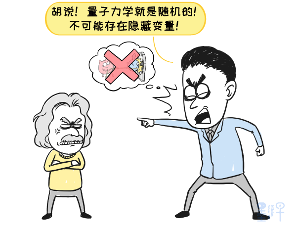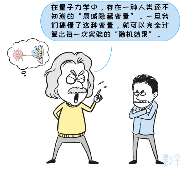 按照爱因斯坦的理解,这种随机性是一种表面现象。在它的背后,存在一种人类还不知道的“局域隐藏变量”。一旦我们搞懂了这种变量,就可以完全计算出每一次实验的“随机结果”,量子力学里并不存在真正的随机。也就是说,爱因斯坦认为“上帝”不掷骰子。