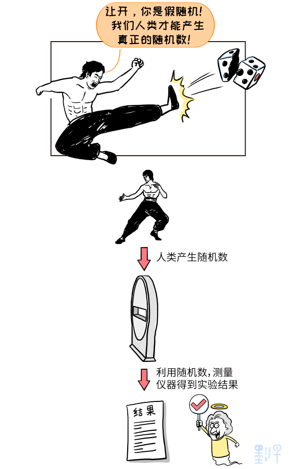 我们回想一下,在贝尔实验中,两台测量仪器必须能够随机地选取角度。可是,咱们做这些实验不就是为了搞清楚世界上有没有真正的随机吗?