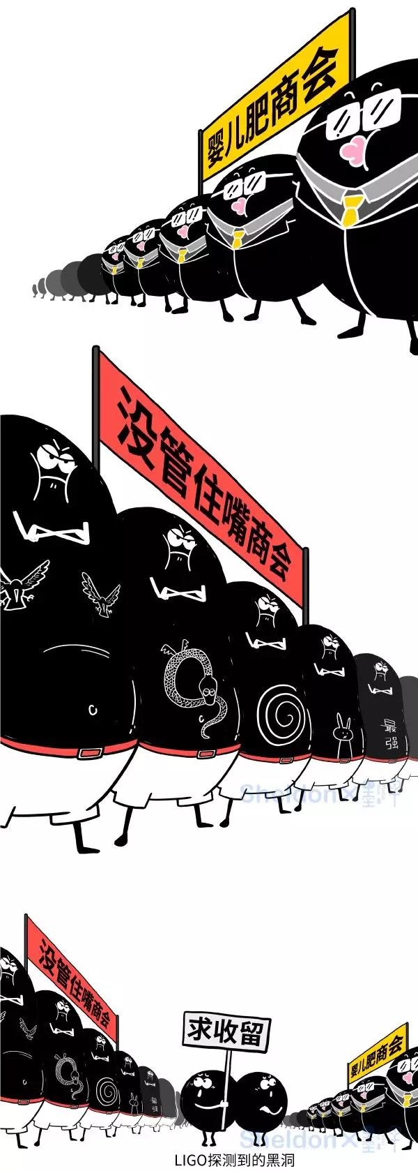 3. 在天文学中,婴儿肥的分类叫恒星级黑洞。没管住嘴的分类叫中等质量黑洞。漫画对中等质量黑洞的起源做了大幅简化。实际上,中等质量黑洞起源也是开放课题,有人认为它是恒星级黑洞在物质丰富的、且有加速吸积的(例如磁场)特殊星际环境中产生的,也有认为它源自侏儒级的星系整体坍塌,说法不一。
