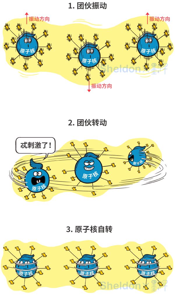 第二个原因,是原子内各个成员的小动作太多。比方说,许多原子核有好几种办法自转,每个核外的外层电子可以在几个空轨道之间乱窜。