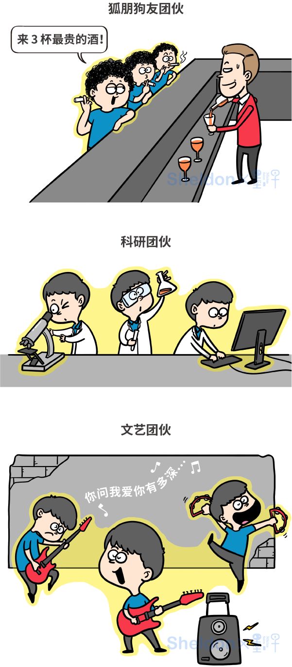 如果他们跑去抽烟喝酒烫头,那他们就是狐朋狗友团伙,靠酒肉的力量维系。如果他们跑去买仪器做实验办论坛,那他们就是科研团伙,靠科学的魅力维系。如果是去唱歌跳舞听戏,那他们就是文艺团伙,靠艺术的张力维系。