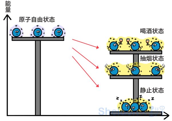 同样的道理,为了研究原子间的作用力,科学家就必须想办法让原子形成的束缚态,然后观察它们会如何开展内部活动。如果两种原子团伙的内部活动不一样,那就说明维系这两个团伙的作用力不一样。